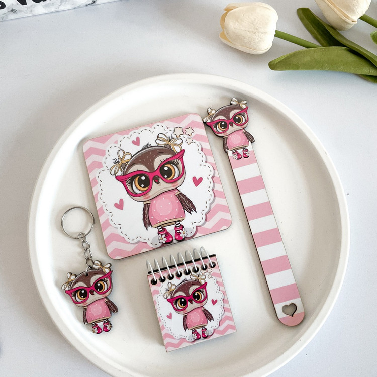 این پک شامل زیرلیوانی،آویز کلید،بوکمارک،دفترچه